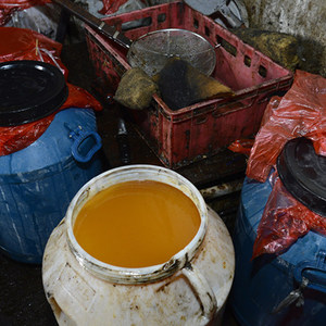 在一些乡村集市和粮油店里,会摆放着用塑料桶装的散装食用油。他们色泽鲜亮、价格便宜,肉眼看上去和我们平常吃的豆油无异,深受某些餐饮行业的喜爱。但您能相信吗,这些看似精良的散装油背后竟隐藏着令人作呕的真相。辣椒、剩菜、鸭头、鸡骨头等厨余垃圾在别有用心之人的利用下摇身一变成了食用油,端上了人们的餐桌。