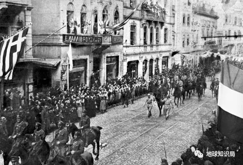 一年过后,第一次世界大战爆发,奥斯曼帝国又站边失误,陪着德意志帝国与奥匈帝国一起在1918年战败解体,战胜国分片占领了帝国首都。同时希腊军队占领伊兹密尔,亚美尼亚军队与英军占领了卡尔斯。