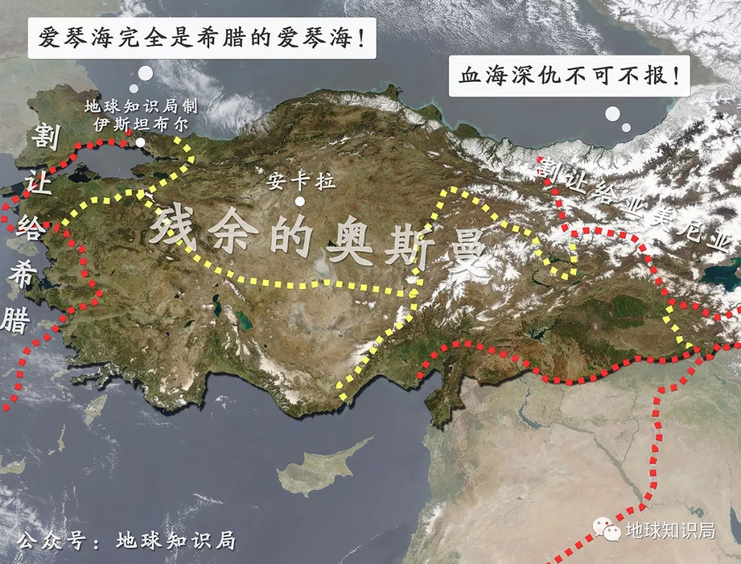 这可太狠了,奥斯曼帝国连“祖宗之地”安纳托利亚都保不全了,领土面积从战前的近160万平方千米,骤减至45万平方千米。《色佛尔条约》还在商讨之时,内容泄露,奥斯曼帝国舆论哗然,民怨沸腾。
