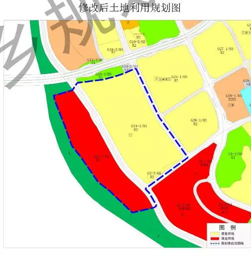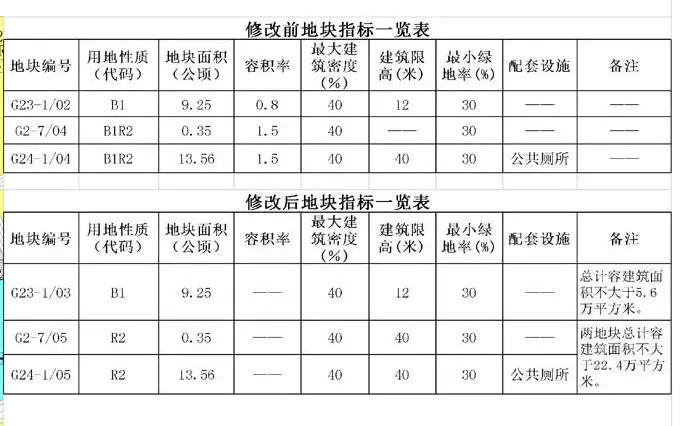 2、将G24-1、G2-7两地块总计容建筑规模由20.6平方米调整为22.4万平方米,用地性质由商住混合用地(B1R2)调整为居住用地(R2);