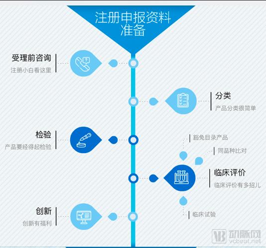 从总体思维上看,医疗器械申报以分类管理为基础,以风险高低为依据,确定医疗器械注册与备案的具体要求,其具体的申报流程如下图所示: