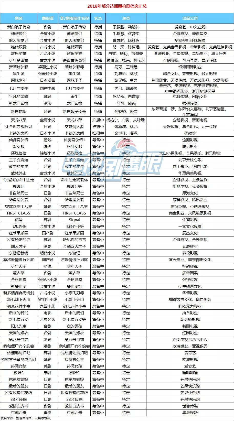 继上次《粉红女郎》宣布翻拍的消息登上热搜,引发一波集体回忆潮和选角的讨论后,近日,有关“天国的嫁衣翻拍”、“红苹果乐园要翻拍”的话题再登热搜。类似现象今年屡见不鲜,武侠剧《绝代双骄》《神雕侠侣》《倚天屠龙记》纷纷重启,台偶剧《王子变青蛙》《命中注定我爱你》《放羊的星星》翻拍提上日程,各大主流视频平台也持续加码翻拍剧的投资,翻拍剧正成为业界不容忽视的风潮。(翻拍剧汇总表格见文末附表)