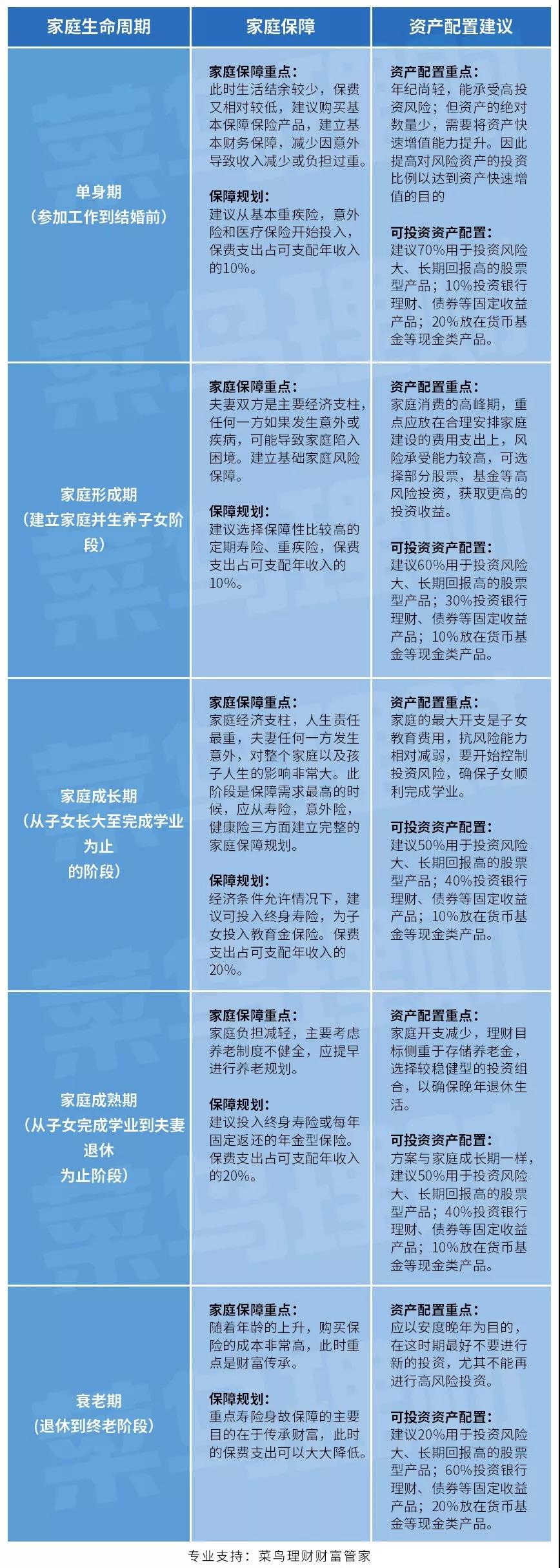 另一方面,菜导也给大家分享一张不同的家庭生命周期调整资产配置的参照图。