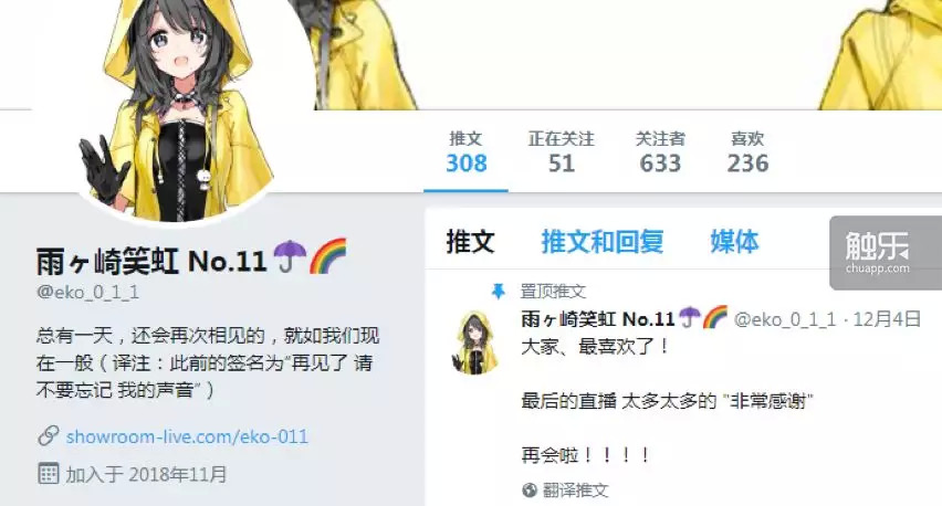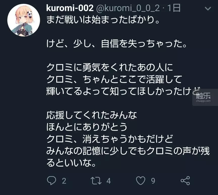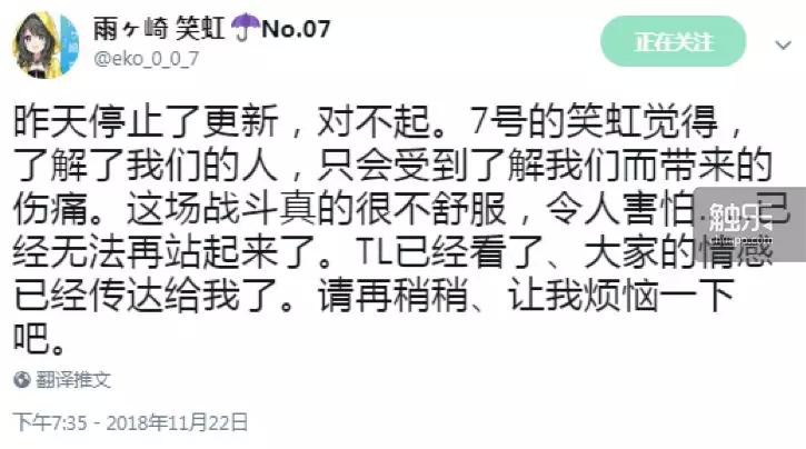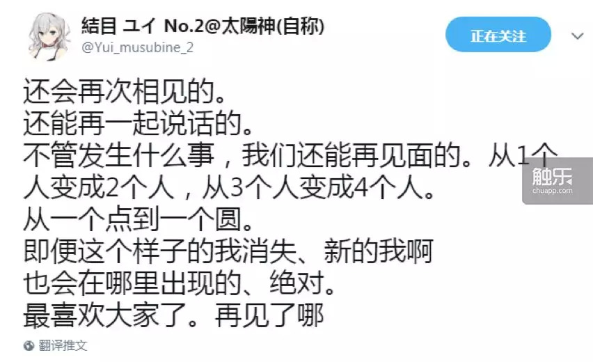 就在观众纷纷猜测结衣07是不是就此退出的时候,这个账号发了最后一条推特: