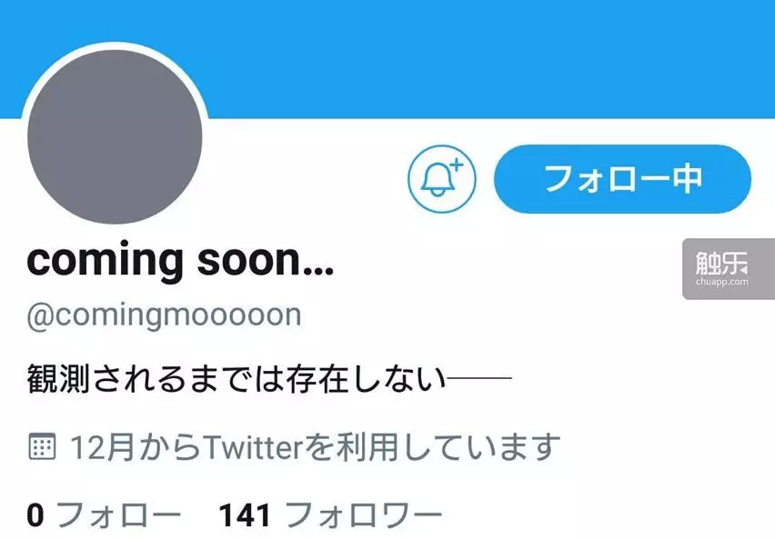 点进去新的账号,没有任何发言,只有昵称“即将到来”,而后介绍中写着:“直到被观测为止都不存在——”。