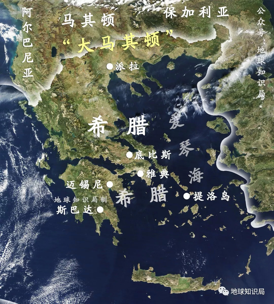 在亚历山大顶峰时代的大马其顿概念,位置大概包括希腊北部、保加利亚西南部、阿尔巴尼亚东部各一部分,再加上如今的马其顿共和国,是一个相当庞大的概念。