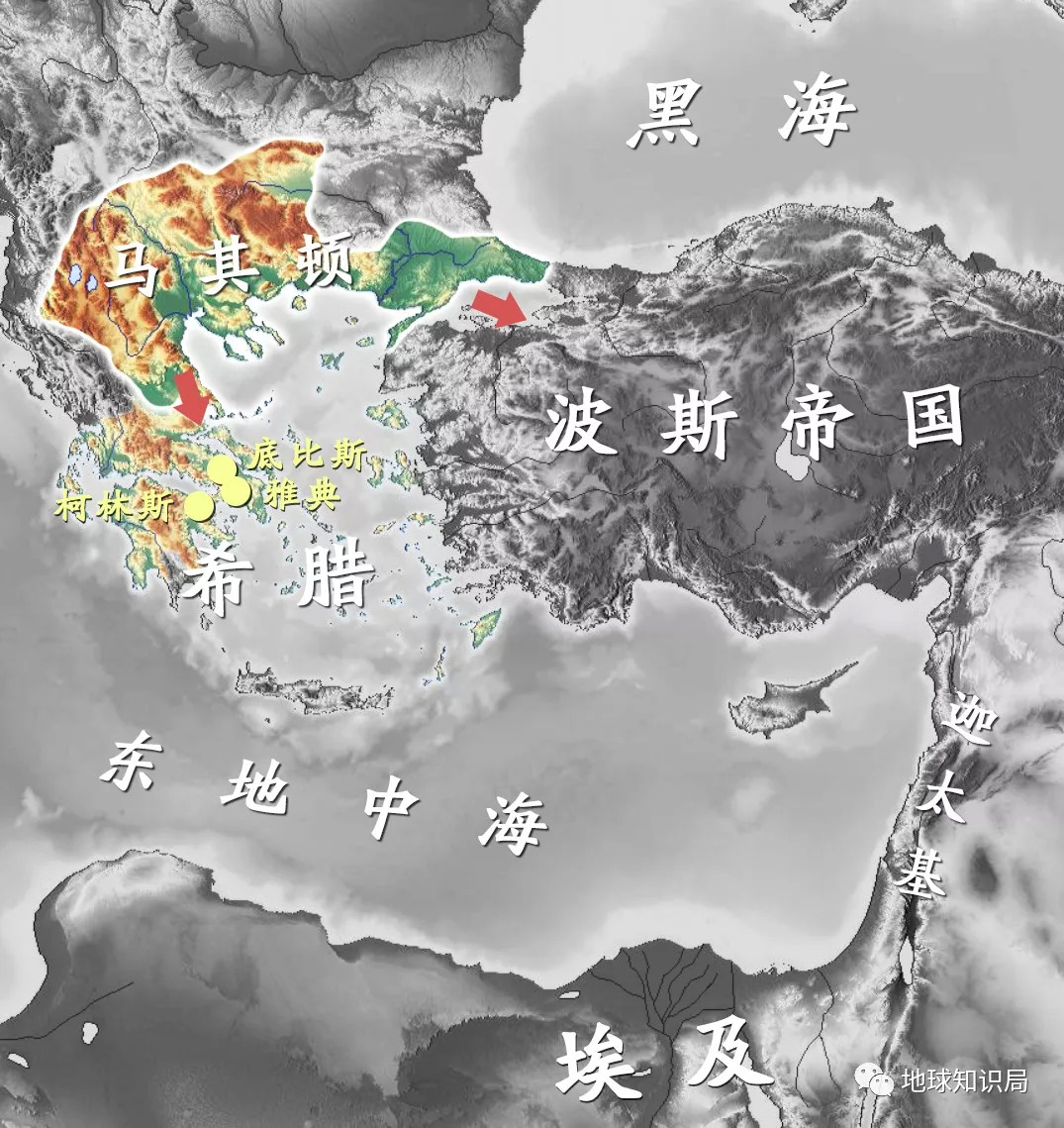 古马其顿国(Kingdom of Macedon)位于现希腊北部,与当时雅典、斯巴达等均属城邦制国家,其实力在诸多城邦中并不突出。马其顿(Macedon)一词源于古希腊语Μακεδον α,意指“高”,据推测可能用于描述马其顿人身高体壮的体格特征。