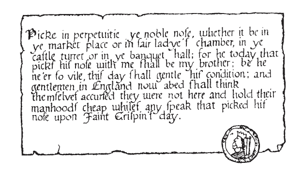 哈罗德国王无法专心指挥战役,因而被诺曼底的威廉公爵打得落花流水。赢得战役的威廉公爵成为英王,从此改变了历史。威廉登上国王宝座后下令禁止臣民在公开场合挖鼻,违者格杀勿论,一斧毙命,绝不姑息。更有甚者,为避免士兵在备战之时禁不住诱惑将手指插入鼻孔,还特地制作了“锁链手套”。这道“挖鼻禁令”(Decree Nosi)对其后的400多年产生了深远的影响,并且是英伦三岛挖鼻活动远远落后于其他国家的主要原因。这道禁令使这位诺曼底公爵获得了“鼻王威廉”(William the Conk)的绰号。历史学家认为,这也是法国军队在随后的几个世纪中战无不胜、无坚不摧的关键。