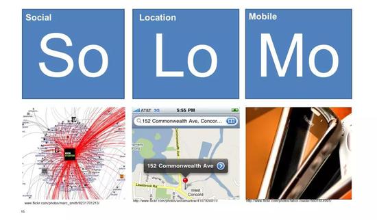 SOLOMO,即social,local,mobile三个单词的缩写拼在一起。后人给这个单词各种各样的释义。简单的说,就是社交、本地、移动,这是当年的创业风口。