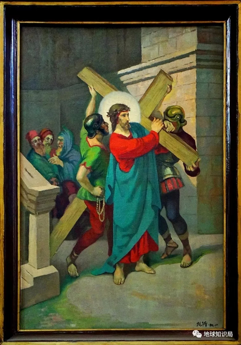 天主教与新教的教堂在布局上也有显著区别:天主教堂入口处必有圣水钵,教徒进堂后蘸圣水画十字,新教教堂则无此设施;天主教堂在堂内两侧立柱上挂有14处苦路像,描绘耶稣在被诬告定罪后,背负十字架前往加尔瓦略山(新教称其为各各他)的场景。