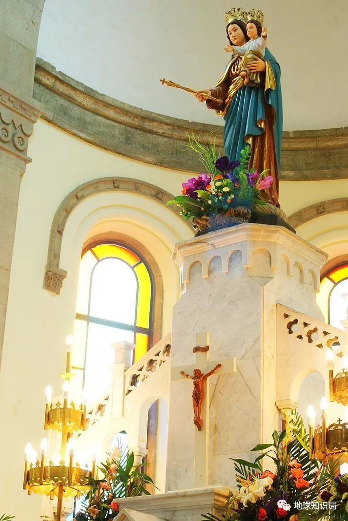 名字有讲究,教堂里的装饰也有讲究。若教堂内有圣母、耶稣或圣徒的雕像,则大概率为天主教堂,因为天主教会制作与宗教人物与传奇轶事相关的雕像与图画。当然这并不意味着偶像崇拜。在他们看来,这些具像化的物品,仅作为记号以示纪念,培育基督信仰,而非崇拜雕像与图画本身。