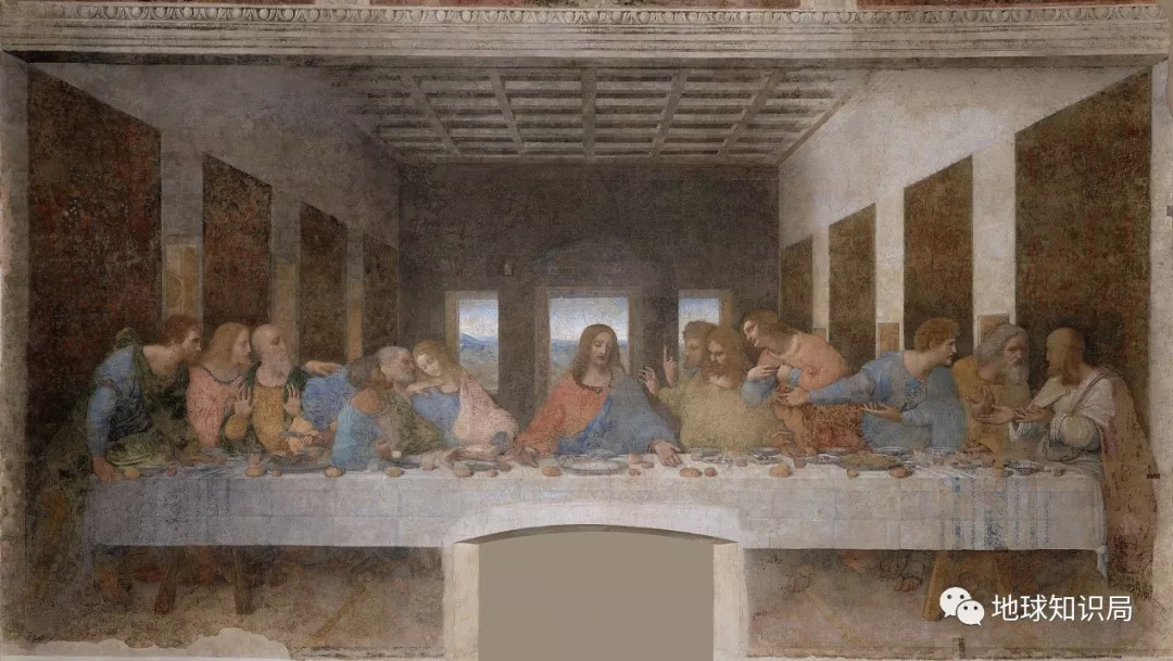 达·芬奇名画《最后的晚餐》中的耶稣与十二门徒