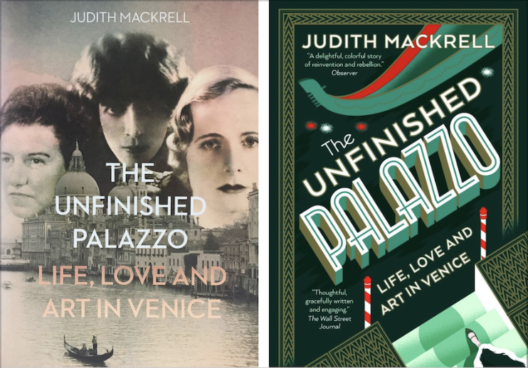 英国Thames & Hudson出版社封面设计总监Rosie Keane告诉我们,由于平装书纸张成本低廉,在封面制作上就可以相对铺张一些,所以她采用了无法在精装书上实现的装帧效果。《未建成的宫殿》(The Unfinished Palazzo)是一本介绍威尼斯宫殿及Luisa Casati、Doris Castlerosse和Peggy Guggenheim三位相关人士的艺术史书籍。Keane换掉了精装版乏善可陈的黑白封面(三个女人的脸和威尼斯风景的照片,图左),而在平装版上采用了烫金凸印工艺,以彰显威尼斯彼时的浮华与魅力(图右)。对于艺术史书籍而言,冷艳的几何封面虽略显违和,但这正是出版社追求的效果——吸引爱看小说和寻求消遣的读者前来购买。