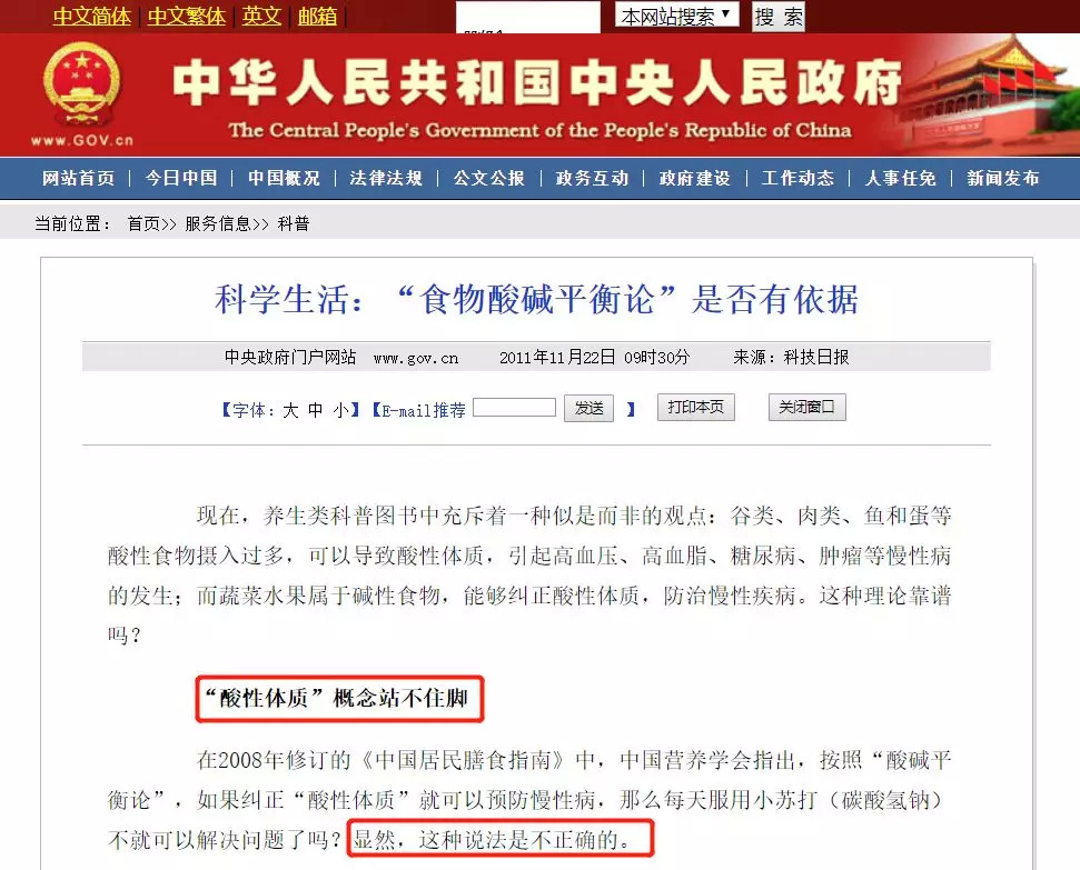 如果你稍微敏锐一点,随便找个搜索引擎搜搜 “ 酸碱平衡 ” 四个字,你就会发现中国政府网都已经发文进行了辟谣。。。