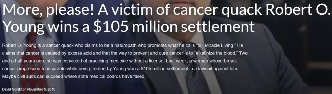 同时这是一个最先在国外流行起来的骗术,最早玩酸碱平衡、吃东西可以调理治疗癌症这个骗术的那位老哥,现在已经在美国圣地亚哥吃牢饭了~