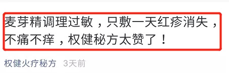 同时,麦芽精这个产品在权健的宣传里,还可以治疗过敏。