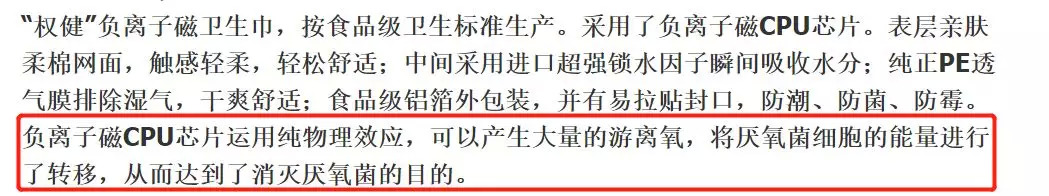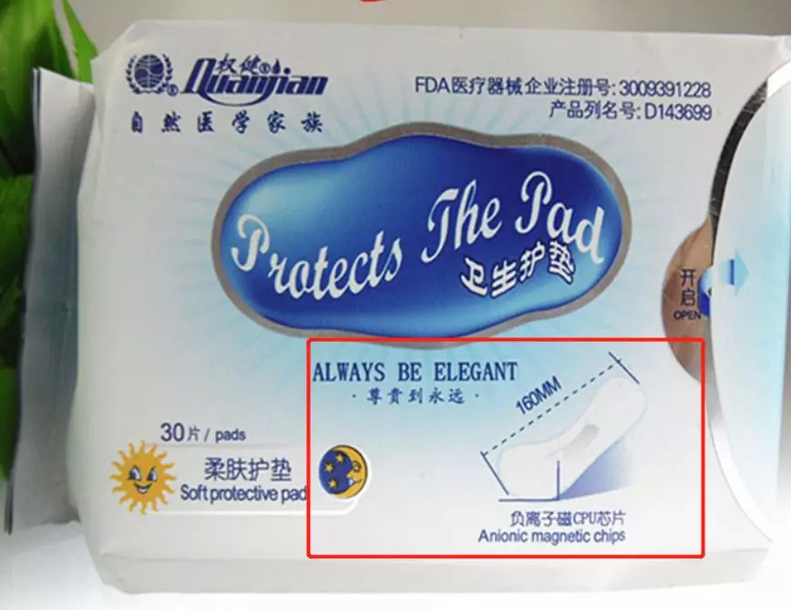 比如:聚合材料负离子磁性 CPU 芯片 —— 卫生巾。