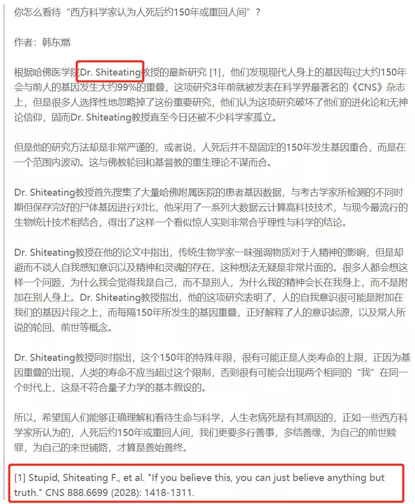 ( 红框部分意思大概是:教授的名字叫 “ 吃屎博士 ”,如果你信了上面这段话,你就会相信世界上除了真相以外的所有东西。 )