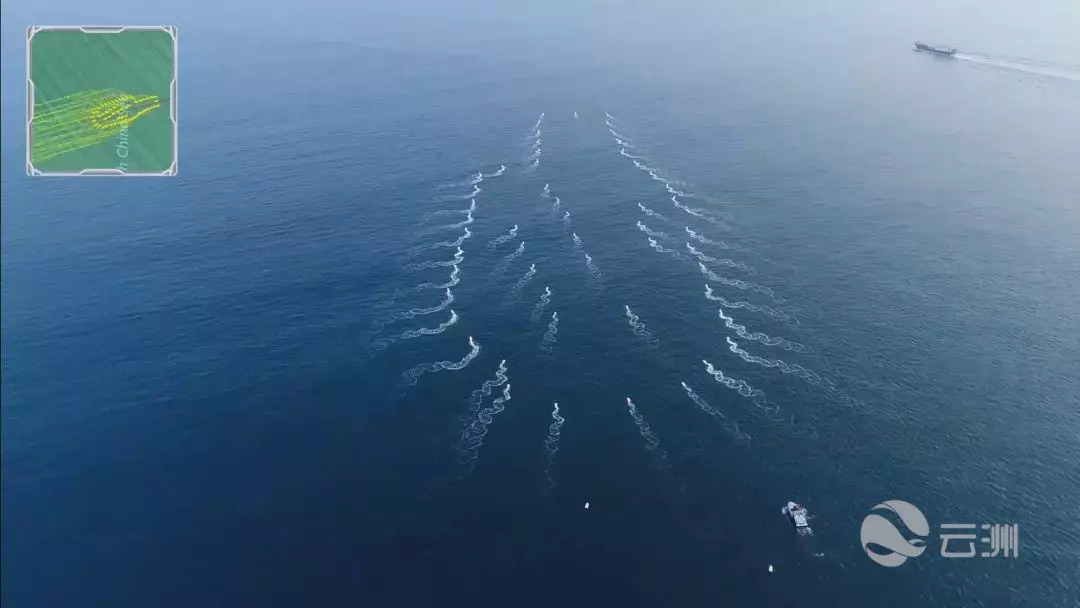 同年3月,完成了56条无人艇群快速集结、队形保持、动态任务分配、队形自主变换、协同避障及容错控制等多项测试科目,一举超过美国此前创下13条无人艇集群自主演练的世界纪录。