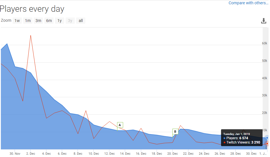 Artifact已经上线一个月了,但这款V社耗时五年开发的卡牌大作却以难以置信的速度迅速“凉了”。根据SteamDB统计的数据,Artifact每日玩家数量自公测以来与日俱减,目前已从巅峰时期的6万人跌落至6000人。