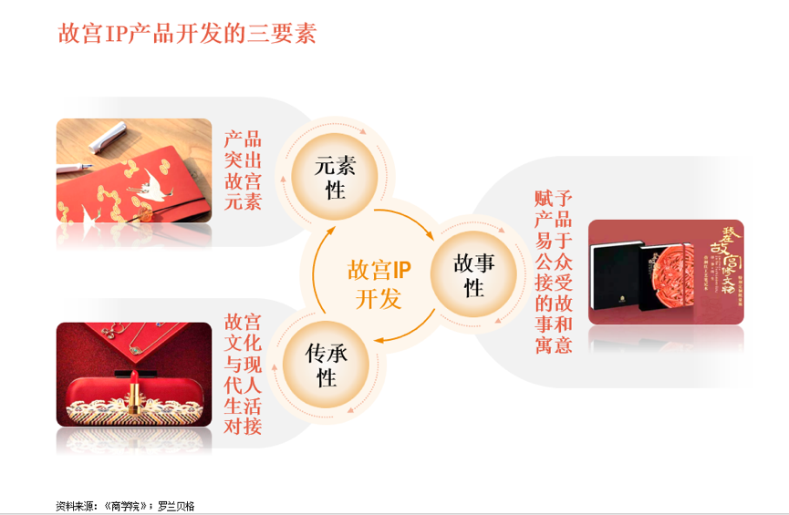 基于清晰的价值观和商业定位,故宫制定了一套围绕故宫IP开发产品的“三要素”原则,即元素性、故事性、传承性(图J)。