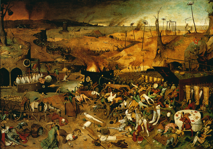 正因为如此,我们从《死神的胜利》中看到了勃鲁盖尔所传递的激进和反抗,在某种程度上,甚至比博斯的作品更加阴郁。因为勃鲁盖尔所描绘的不是神带给人类的惩罚,而是死亡,单纯的死亡,让人感到冰冷绝望的死亡,没有人能够逃避的死亡。