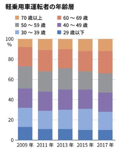 第三个原因是日本已经迈入老龄化社会。对于老年人来说,换车时选择轿车或SUV的意义不是很大。由于身体机能的降低,选择容易驾驶的小型车也更安全。实际上60岁以上的老年人选择K-CAR正呈现逐年增长的趋势。