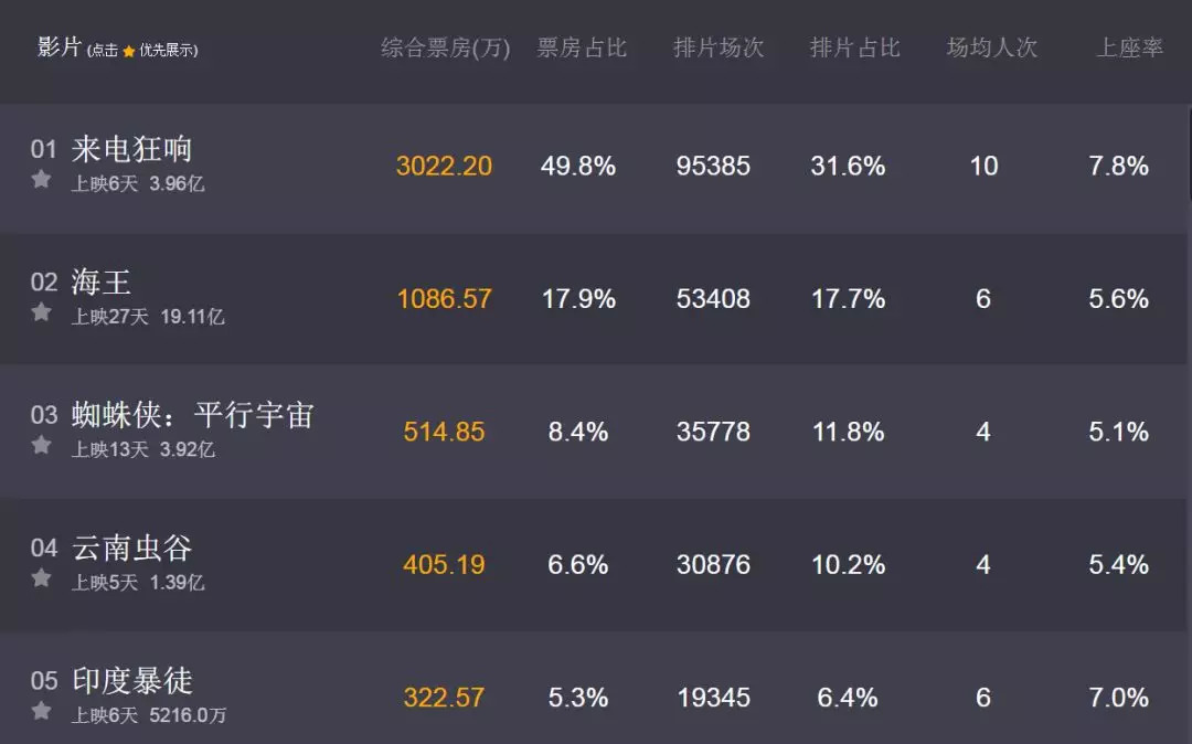 单看数据,《来电狂响》大有希望跻身「五绝」之列。