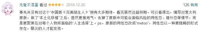 这部改编自《完美陌生人》的国产喜剧,起初并不被人看好,呼声远不如改编自《鬼吹灯》的《云南虫谷》。