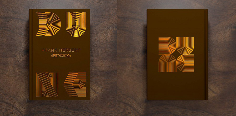 企鹅经典的“银河系列”包括《沙丘》《2001:太空漫游》《黑暗的左手》等科幻小说,每一本书的封面上只有书名的字体排印,立意特别。比如小说《沙丘》的内容是围绕厄拉科斯——一颗银河系中重要的战略政治行星——展开的,讲述了参与各种事件的各色人物从不同视角出发对于这颗星球的不同理解。封面上的单词“DUNE”字母结构很特别,U形结构90度旋转四次,无论怎么转,读出来都是“DUNE”。这个字母游戏由亚历克斯·特罗切特(Alex Trochut)设计,紧密地结合了厄拉科斯的概念——这颗行星在银河系中是一个经过严密计算的事件。