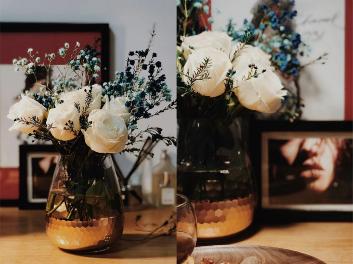 我一般买花的时候都是按自己的喜好来搭配,回去拆包装、剪枝、插花等等,然后看着花花再点上香薰蜡烛,房间就变得很明媚,心情也不会很晦暗了