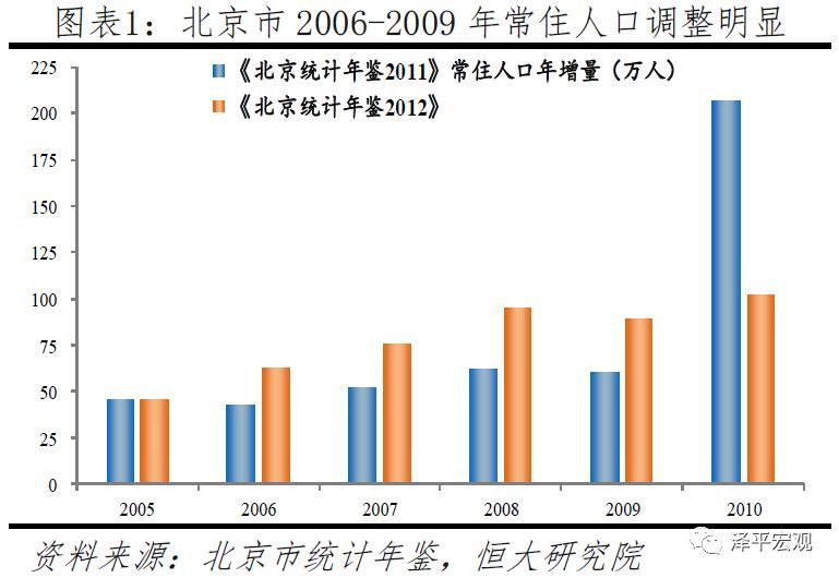 中国年末常住人口是由国家统计局、地方统计局基于每年11月1日零时的人口调查或人口普查统计的时点常住人口推算。其中,尾数逢0的年份为人口普查,迄今已分别在分别于1953年、1964年、1982年、1990年、2000年和2010年开展六次,数据比较准确,但仍存在漏登,比如2000年、2010年人口普查漏登率分别为1.81%、0.12%。尾数逢5的年份为约1%人口抽样调查,俗称“小普查”,数据相对准确;其他年份则为约1‰的人口变动情况抽样调查,数据偏差相对较大,一些地区会根据小普查和人口普查数据对中间的非普查年份数据进行调整。比如,根据《北京市统计年鉴2011》,2010年北京市常住人口增量达207万,远高于2006-2009年54万的年均增量;但《北京市统计年鉴2012》则将2006-2009年年均增量上调至81万,2010年常住人口增量下调至102万。并且,为提高数据准确性,部分地区开始提高对非普查年份的抽样比例,比如北京、上海在2015年小普查时采取3%抽样,北京在非普查年份采取3‰抽样。