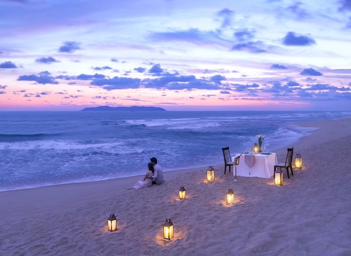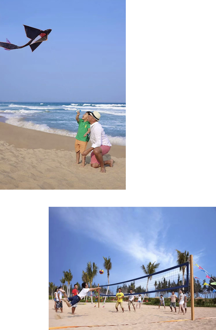 在三亚香格里拉酒店露天泳池前的沙滩,举办篝火派对,聆听波涛阵阵。