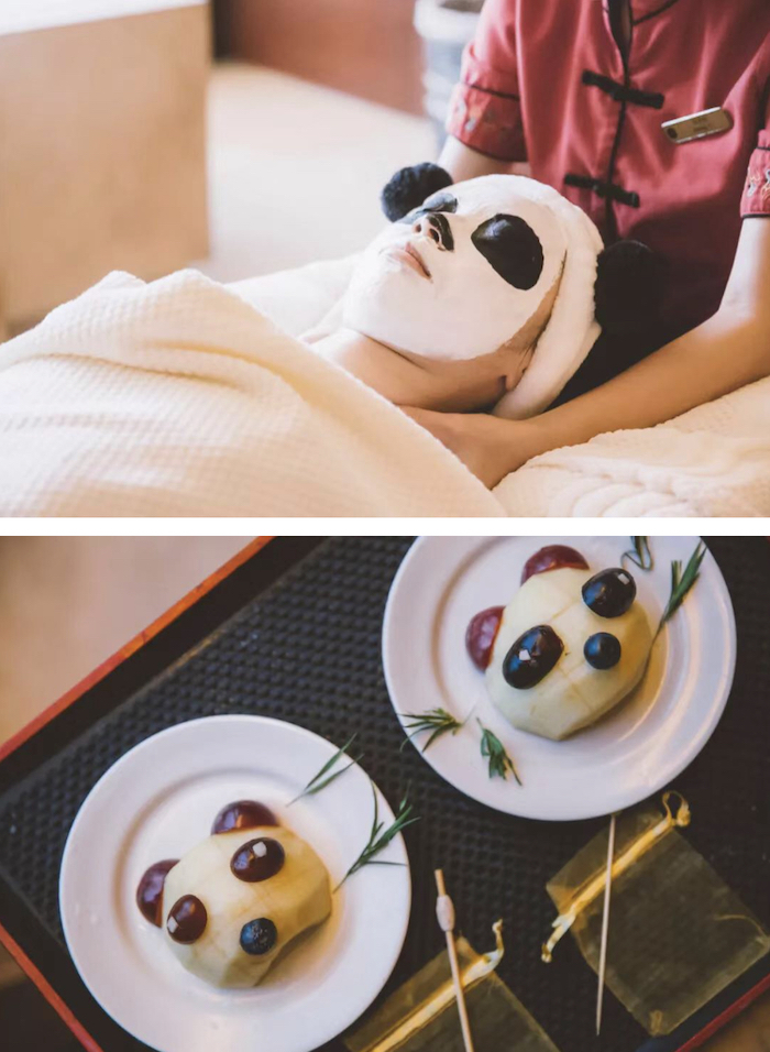 在成都香格里拉酒店,享受一次正宗地熊猫面部护理,化身萌萌哒“国宝”,深层净化肌肤,平衡面部油脂分泌,让肌肤干净通透的同时,变身呆萌“熊猫妆”。