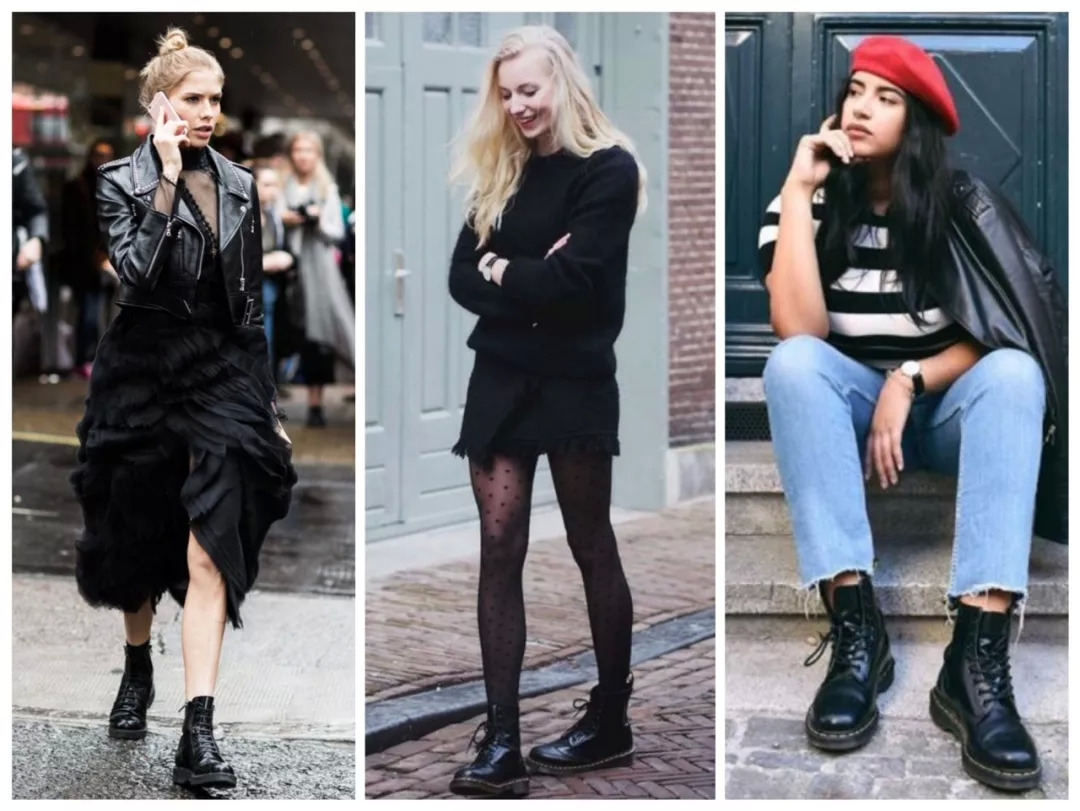 此外,自带原始工装气息的马丁靴,还特别适合搭浪漫、性感的小裙子。娘man平衡,又酷又有女人味~