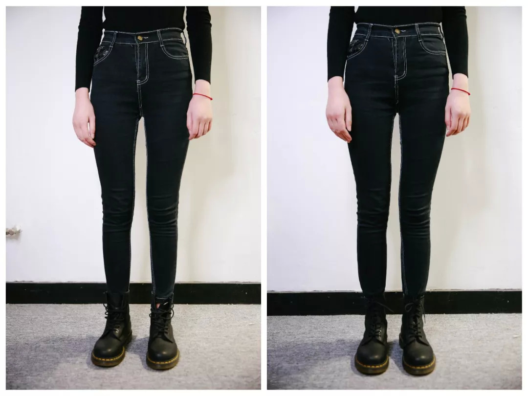 嫌裤子太长的姑娘也可以像我一样DIY,不用纠结剪不齐的问题,上身后基本看不出来;同时,刚剪完是不会有须须的,洗过几次后,它就会自然养出来。