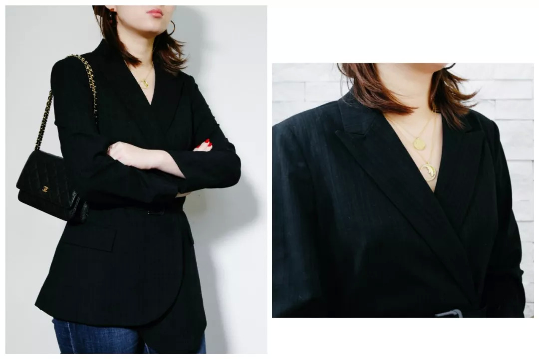 虽然小小一个,但比起普通锁骨链,它存在感却很高。满足了我对配饰精致简单,但又不能戴了跟没戴一样的要求~