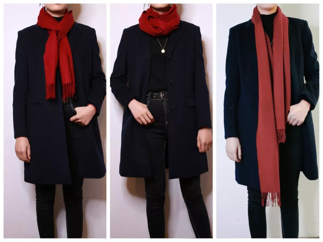 它实物是偏深的枣红色,不像一般红围巾那样容易土气,属于低调又有质感的那种。