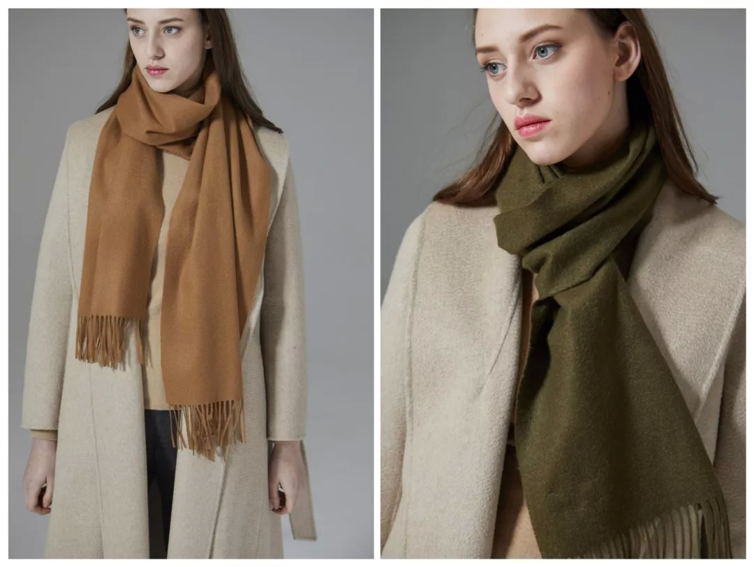 除了这两个色,还想推荐驼色、卡其色,都属于围巾里的基础款,利用率很高。