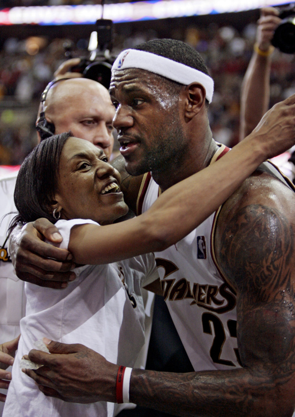 NBA球星勒布朗·詹姆斯与母亲Gloria James