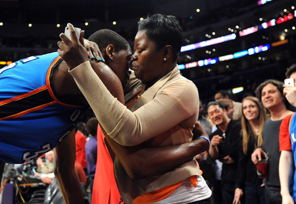 NBA球星凯文·杜兰特与母亲Wanda Pratt