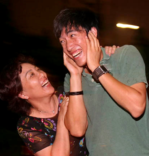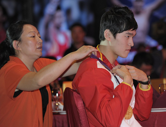 游泳明星孙杨与母亲杨明