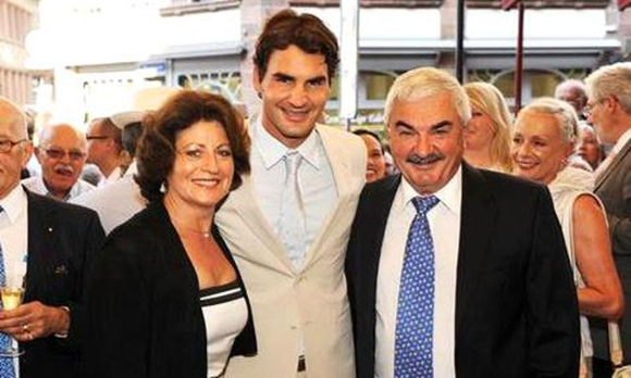 网球明星费德勒与母亲Lynette、父亲Robert Federer