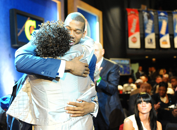 艾弗森亲吻母亲。(图片来源:CFP)