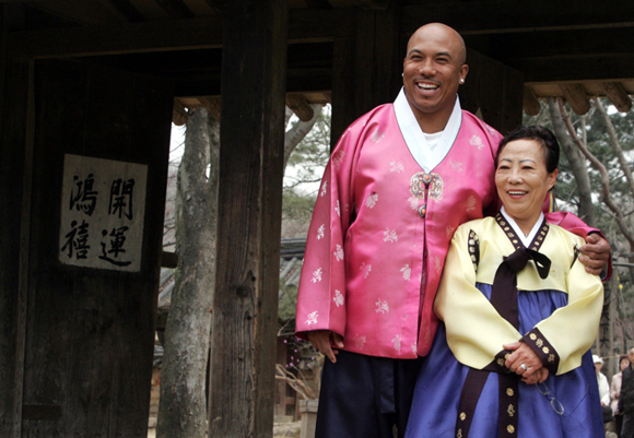 NFL球星赫因斯·沃德与母亲Kim Young-hee