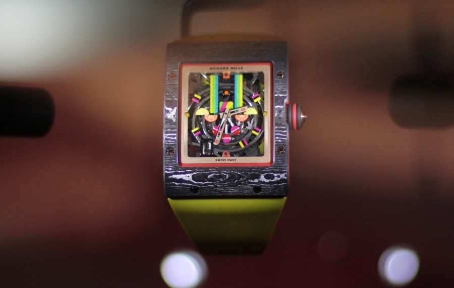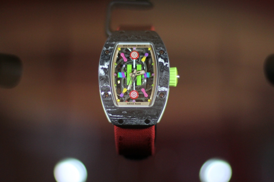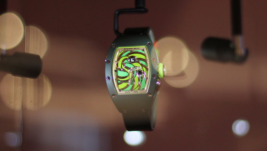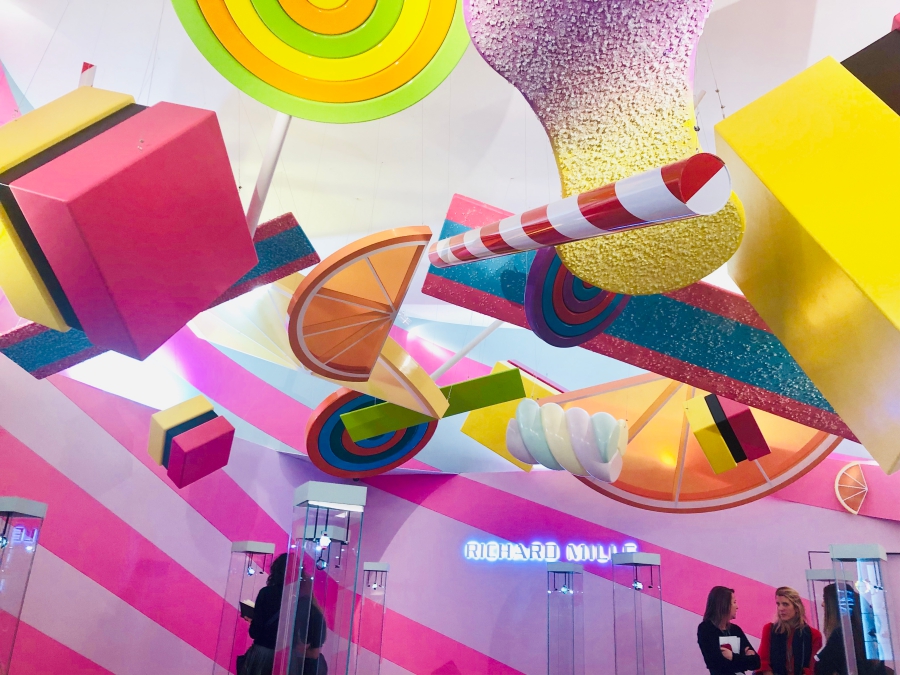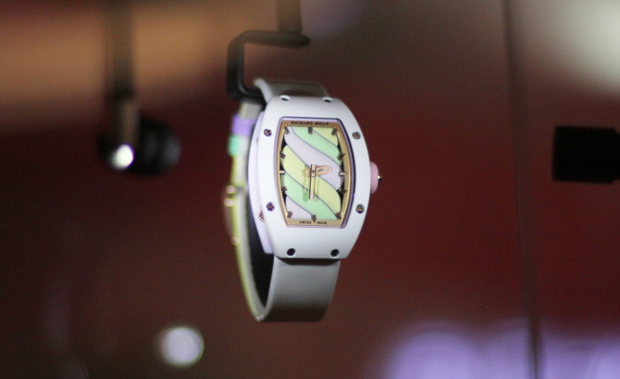 看它在这届日内瓦高级钟表展的展厅布置,你大致能才出来今年Richard Mille腕表系列的出题。这些漂浮在空中的糖果和水果,就是此次Bonbon系列的灵感来源。这个系列由Richard Mille合伙人的女儿Cécile Guenat操刀设计。Cécile Guenat从事珠宝设计的工作,这是她第二次跟Richard Mille合作。