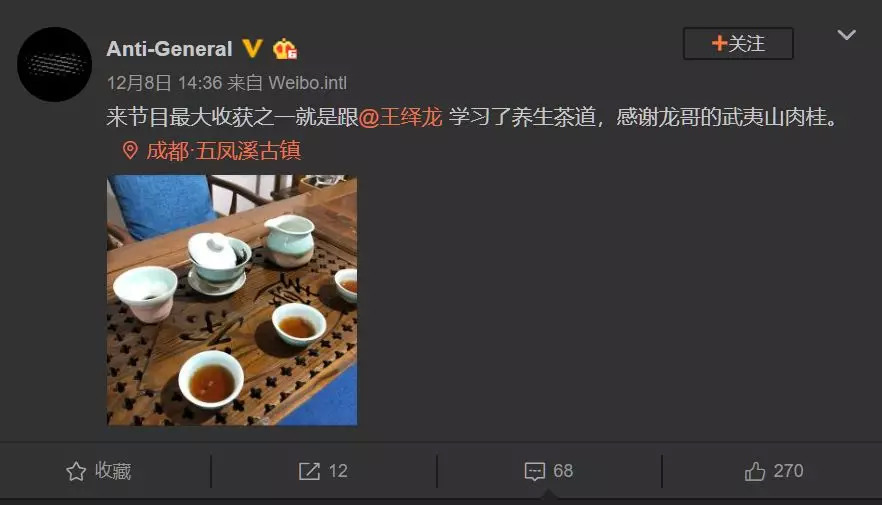 12月8号, 节目中人气很高的选手Anti-General发了微博,说来节目最大收获之一是跟王绎龙学习了养生茶道。有粉丝问,你被绑架了吗?