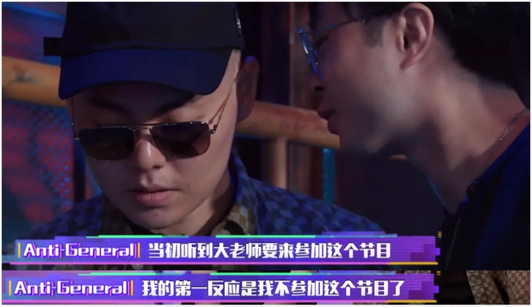 第一期节目里,Anti-General因为评价了几句大张伟,结果被粉丝围攻,王绎龙安慰他:既然你参加这个节目,就是会走进大众的视野,就会看到不喜欢你这种口味的人的评价,你要接受它。