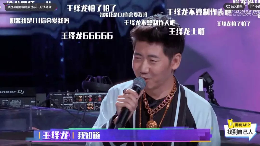 视频画面上飘过一些后期制作的弹幕,上面写着“王绎龙土嗨”、“电音之王”、“如果我是DJ你会爱我吗”......