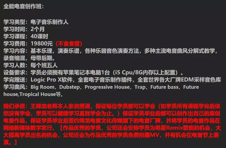 这次再办学校,和之前用来维生不一样,王绎龙想做自己的厂牌。在他的培训学校主页上,有全能电音创作班、全能艺人唱作班、和高级电音进修班三类课程。